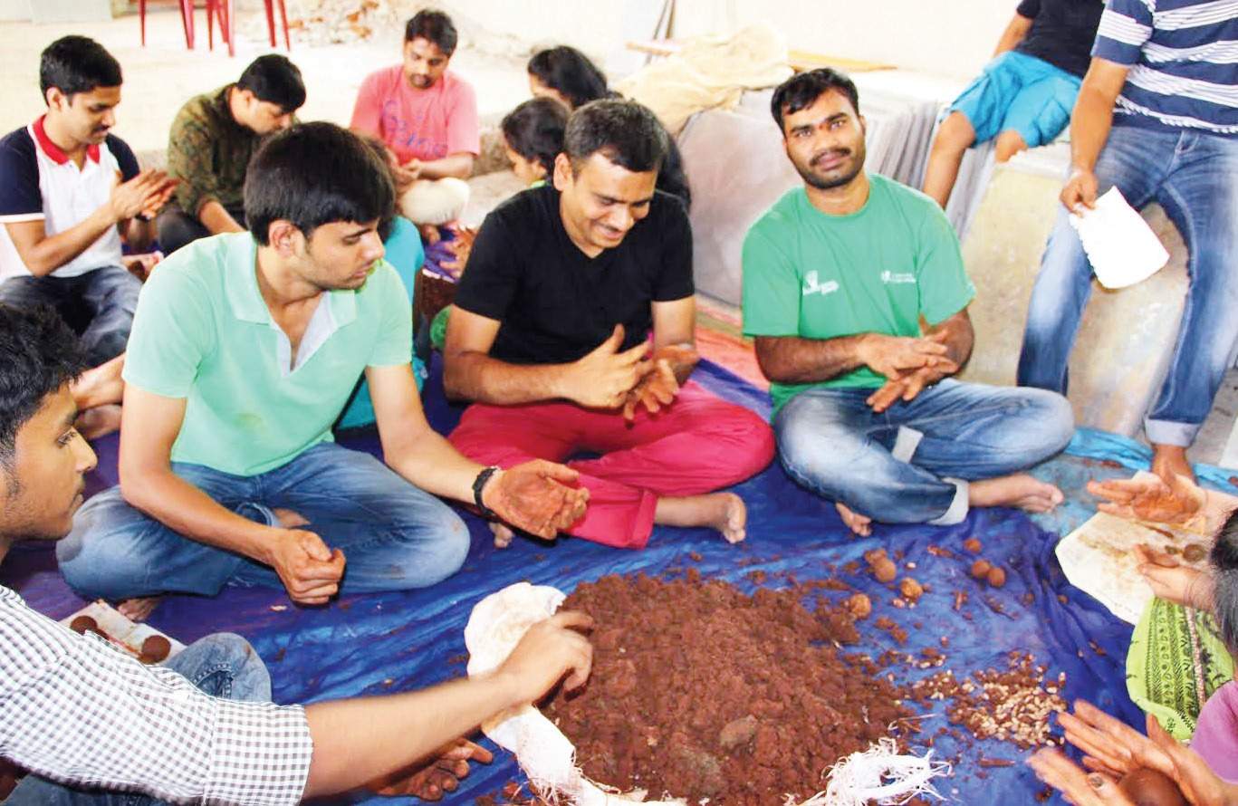 SeedballsBF31jan2017 Published on February 1, 2017 in ‘Guerillas’, ‘bombers’ march into BengaluruFull resolution (1367 × 890) Next → Corporate executives making seedballs using native seeds and cow dung