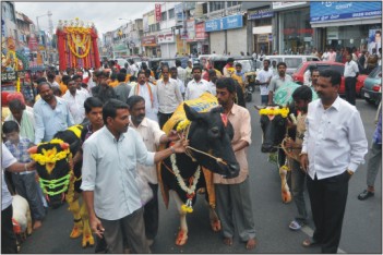 The procession culminated at the J.K. Ground. Organisers have provided exclusive makeshift sheds for the cows using palm fronds.